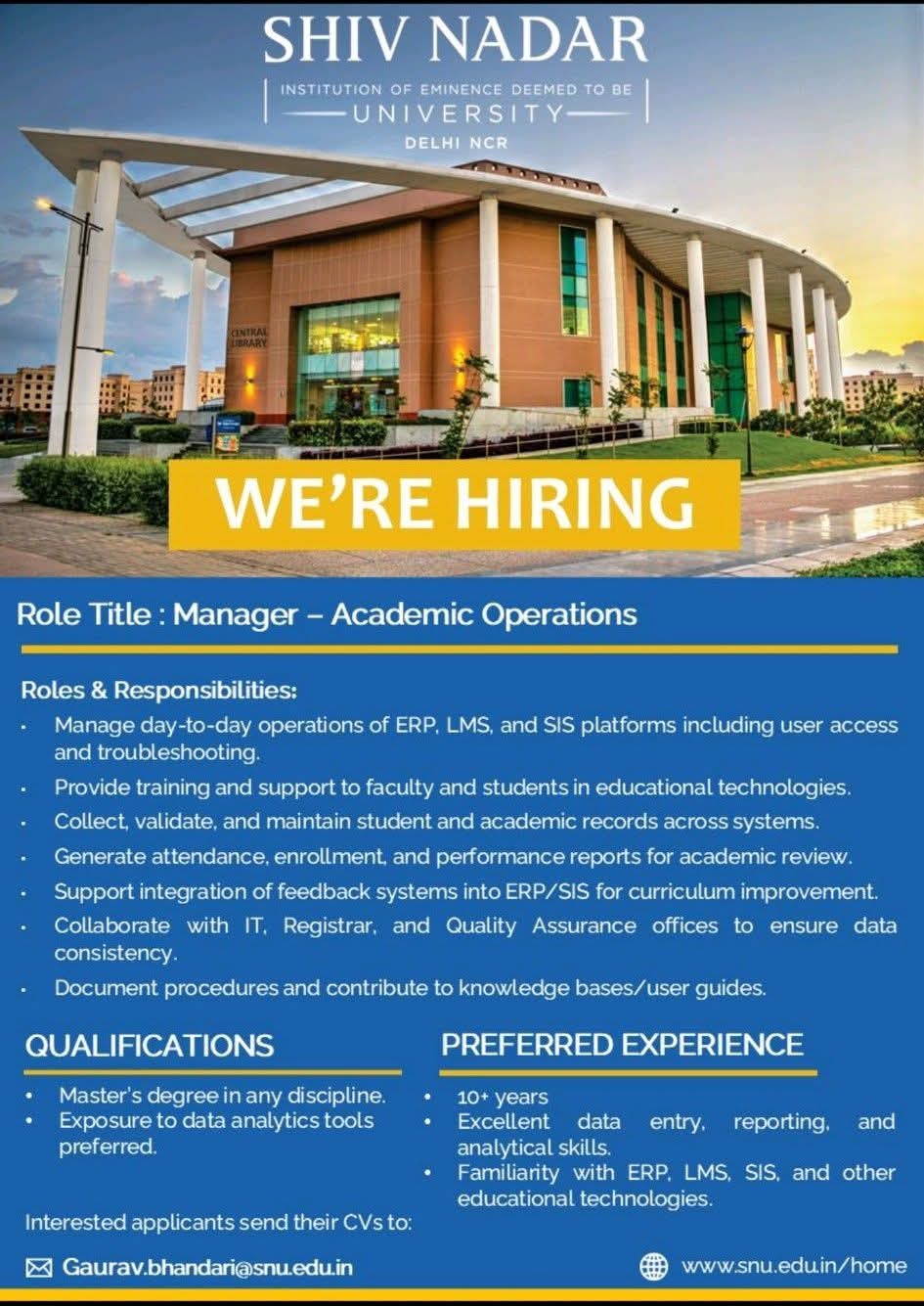 Academic Manager required in Delhi